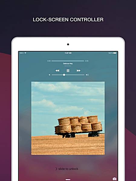 التطبيق بسيط ويحتوي على واجهة بسيطة لا توجد فيها قوائم ، ولكن فقط بعد الأزرار التي ستؤدي أوامر العرض مثل التشغيل والتوقف والتسريع والتغيير في الأغنية وغيرها.