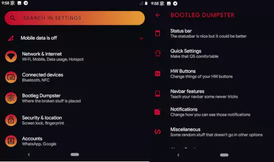 أيضا، وتشمل السمات الشخصية المفضلة في الخطوط والمواضيع المضمنة، وتقديم هالة جديدة كاملة لهاتفك. وأخيرا، والاقتراض الميزات من مشاريع أخرى، مثل أنداليوس، وحيد القرن القذرة، PixelExperience، OmniROM، والعديد من أكثر من بقع، سوف Bootleggers ROM بالتأكيد تجعلك تشعر مثل ( يعني “الرئيسية”، شكرا لي في وقت لاحق).
